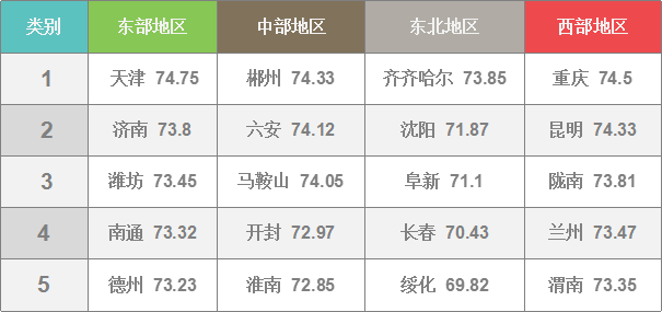 全國城市按區(qū)域改革熱度指數(shù)TOP 5