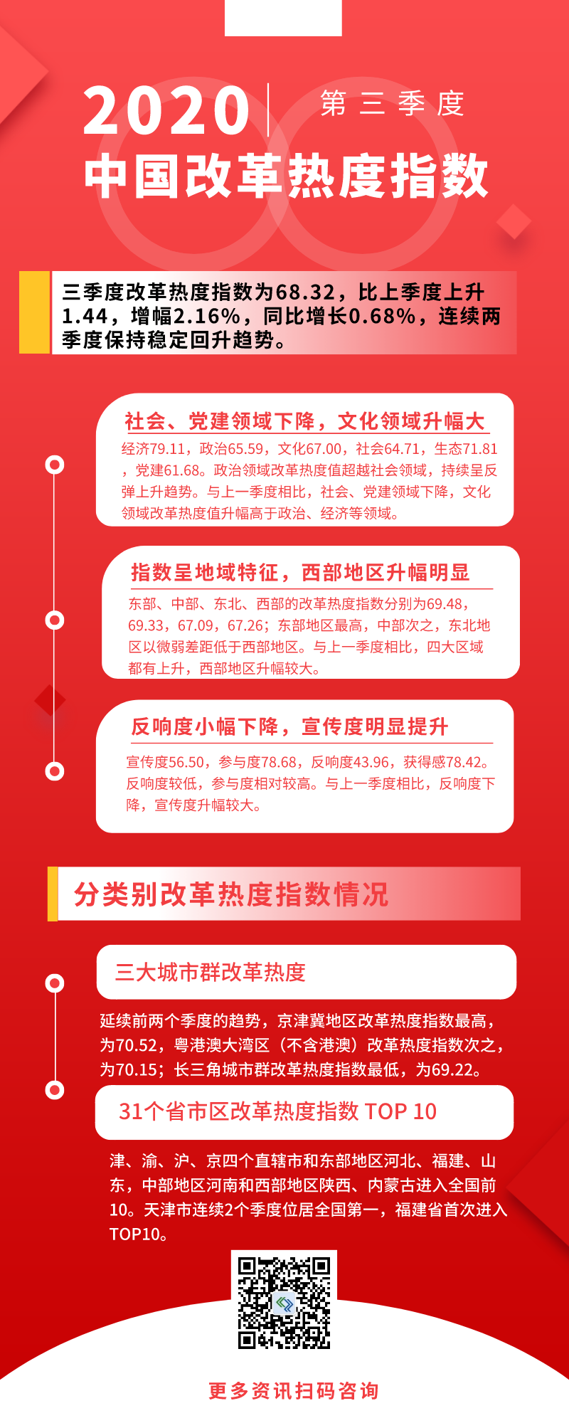 2018年11月25日,中國經(jīng)濟體制改革研究會在“第十六屆中國改革論壇”上首次發(fā)布《改革熱度指數(shù)——中國改革熱度第三方評估報告》,發(fā)布內(nèi)容為2018年第三季度中國改革熱度指數(shù),具體包括我國整體指數(shù)以及分省、分地區(qū)、分城市、分領(lǐng)域、分維度指數(shù),并將改革熱度指數(shù)總體報告呈送中央深改委,同時向各省深改委,以及有需求的城市改革辦提供各自熱度指數(shù)詳情報告。