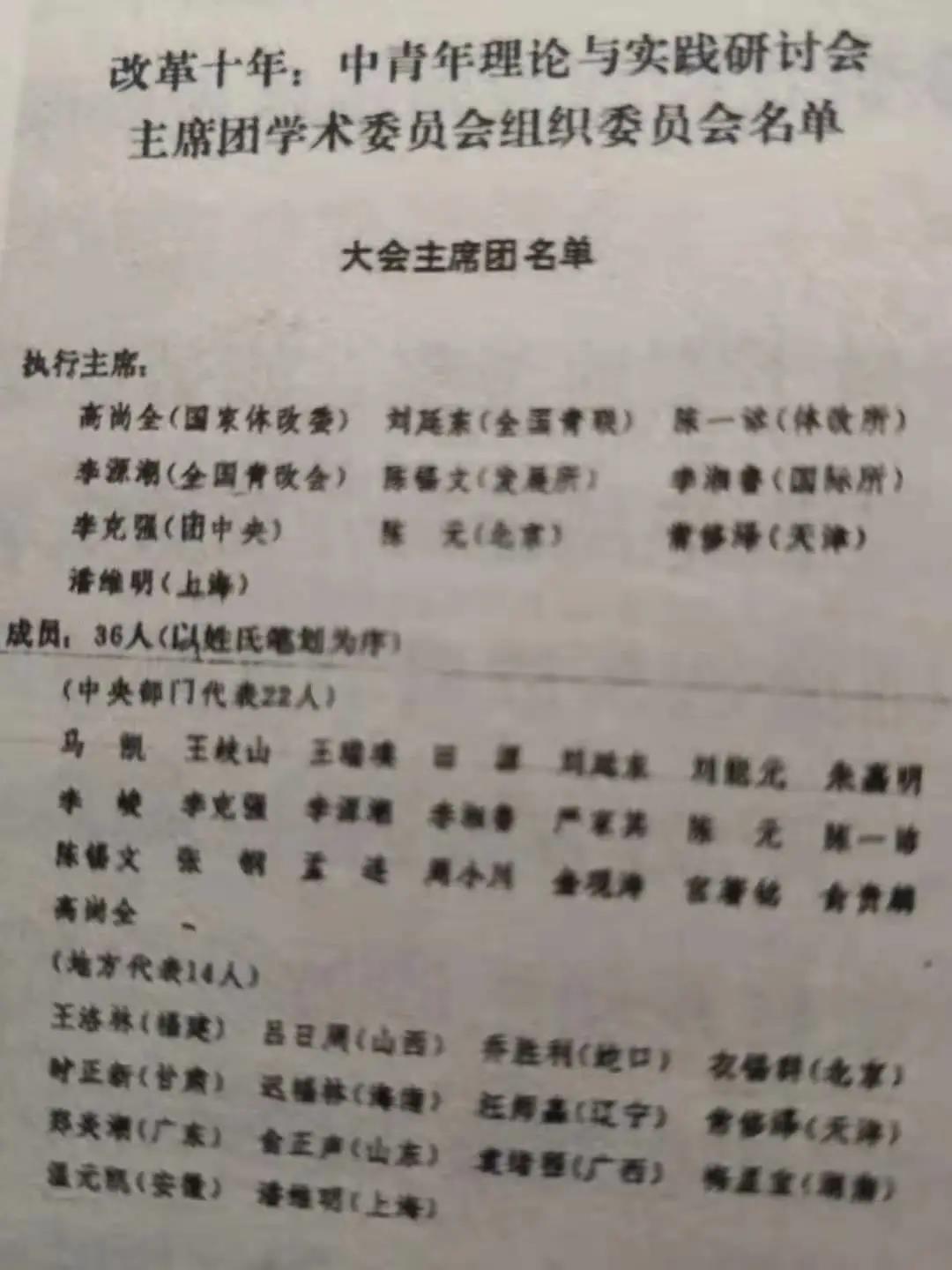 更使我難以忘懷的是,1989年春天的 “改革十年”大會(huì)(全稱為“改革十年:中青年理論與實(shí)踐研論會(huì)”),在北京京豐賓館舉行。近日,微信群流傳當(dāng)年大會(huì)主席團(tuán)名單,您位列十名執(zhí)行主席之首(我作為天津代表忝列其中)。在這個(gè)有全國(guó)400多位代表參加的大會(huì)上,各種思潮涌現(xiàn):穩(wěn)健改革、偏于保守和偏于激進(jìn)三種意見激烈爭(zhēng)辯。我參加了幾次執(zhí)行主席會(huì)議。在您和李克強(qiáng)、李源潮、劉延?xùn)|等執(zhí)行主席的共同主持下,會(huì)議順利進(jìn)行并圓滿結(jié)束。閉幕前,受到中央政治局、國(guó)務(wù)院領(lǐng)導(dǎo)和中央顧問委員會(huì)老同志的接見。在改革十年這一關(guān)鍵節(jié)點(diǎn)上的會(huì)議,受到各方關(guān)注和重視,是很不容易的。對(duì)這樣一個(gè)重要會(huì)議且直接共事數(shù)日,我又怎么能忘記?