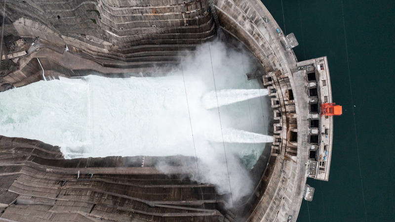 白鶴灘水電站一景(5月19日攝,無(wú)人機(jī)照片)。新華社記者 胡超 攝