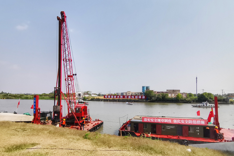 5月16日,在蘇州昆山的吳淞江整治工程施工現(xiàn)場(chǎng),工程船舶整裝待發(fā)(手機(jī)拍攝)。新華社發(fā)