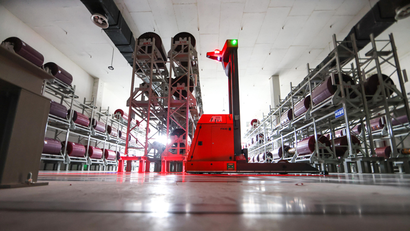 5月17日,AGV(自動(dòng)導(dǎo)引運(yùn)輸車)穿行在貴州首個(gè)5G全連接工廠的部件生產(chǎn)區(qū)內(nèi)。新華社記者 歐東衢 攝