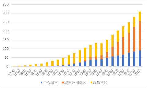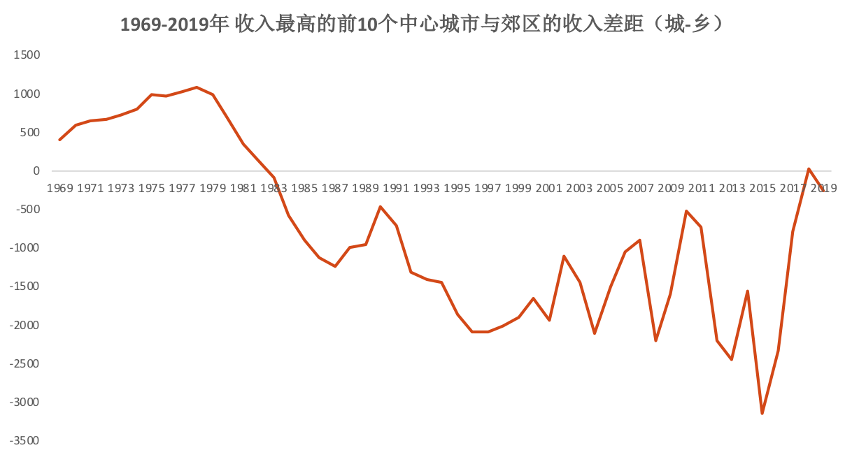 圖2:美國城鄉(xiāng)融合的表現(xiàn)-中心城區(qū)與郊區(qū)的收入差距扭轉(zhuǎn)